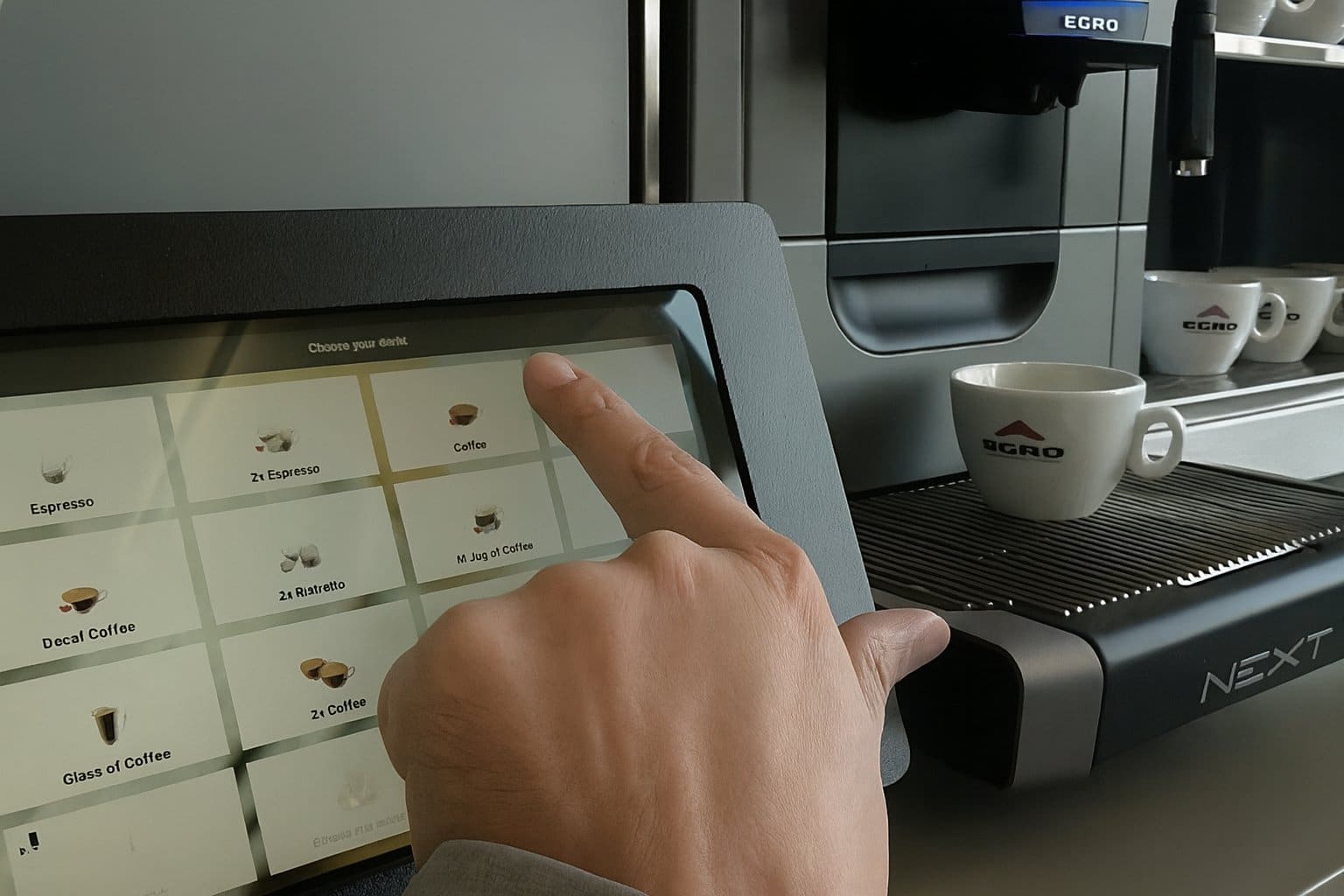 Ganz einfache Umstellung zwischen bedientem Modus und Selbstbedienung. Als Beispiel: am Vormittag bedient das Personal die Maschine – während Besucher am Nachmittag ihren Kaffee selbst beziehen und direkt bezahlen können.